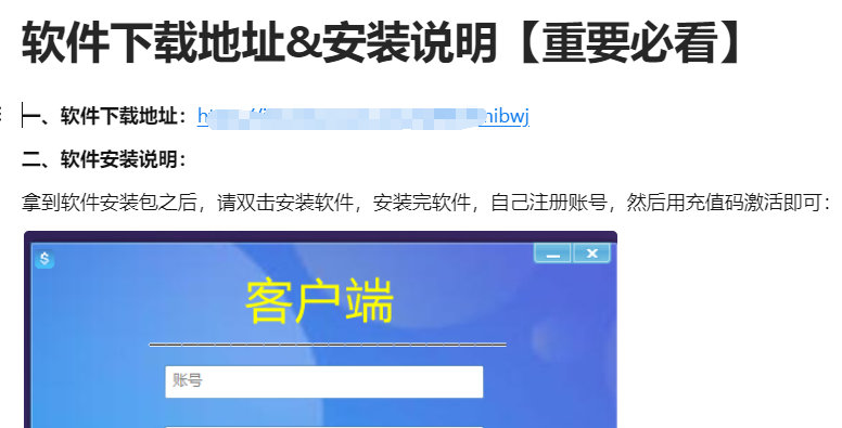 发货内容:(包括软件下载地址&安装说明+充值码)
